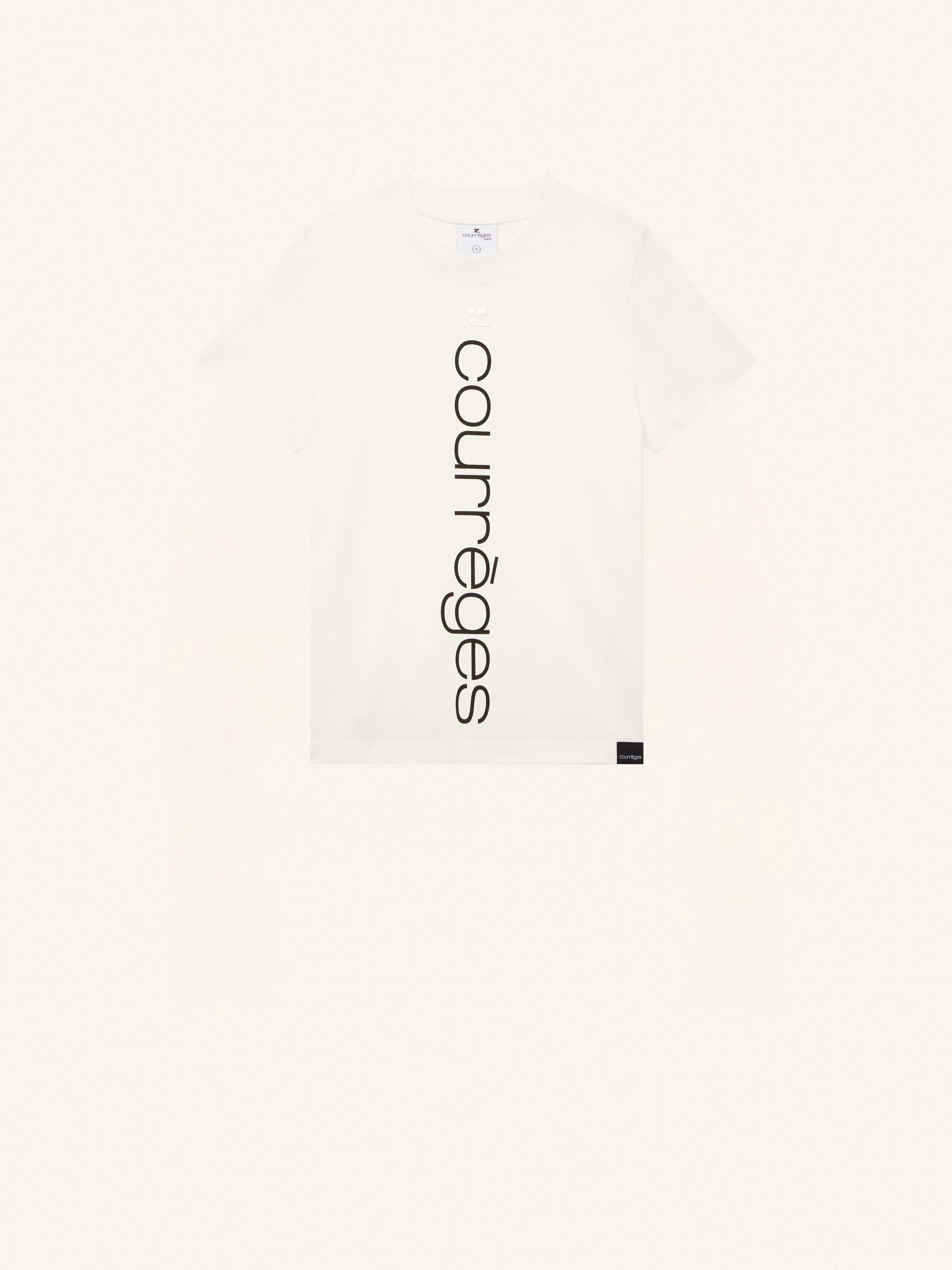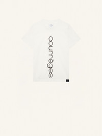 This cotton T-shirt is printed with the Courrèges logo on the front. DETAILS Composition: 100% Organic Cotton (Fabric 2: 100% Cotton) Made in: Portugal Color: Heritage White Code Article : 423JTS006JS0112