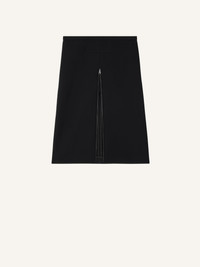 Crepe tailored midi skirt with a welt pocket and long zip opening centered at front. The model is 1.75m tall and wears a size 36. DETAILS Composition: 100% polyester Country of Manufacture: RO SKU: 324CJU181PL00529999 Color: Black