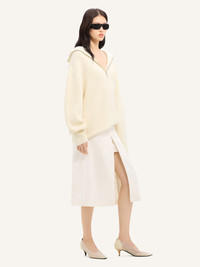 TAILORED ZIPPED TWILL MIDI SKIRT