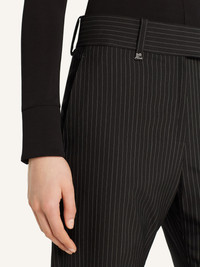 Baggy tailored pinstripes pants with side pockets and metallic AC logo on belt loop. The model is 1.79m tall and wears a size 36. DETAILS Composition: 41% polyamide, 31% polyester, 25% wool, 3% other Country of Manufacture: RO SKU: 325CPA425PL02249901 Color: Black/Heritage White