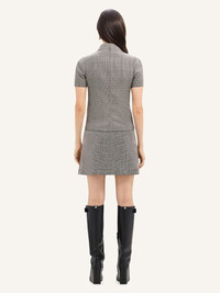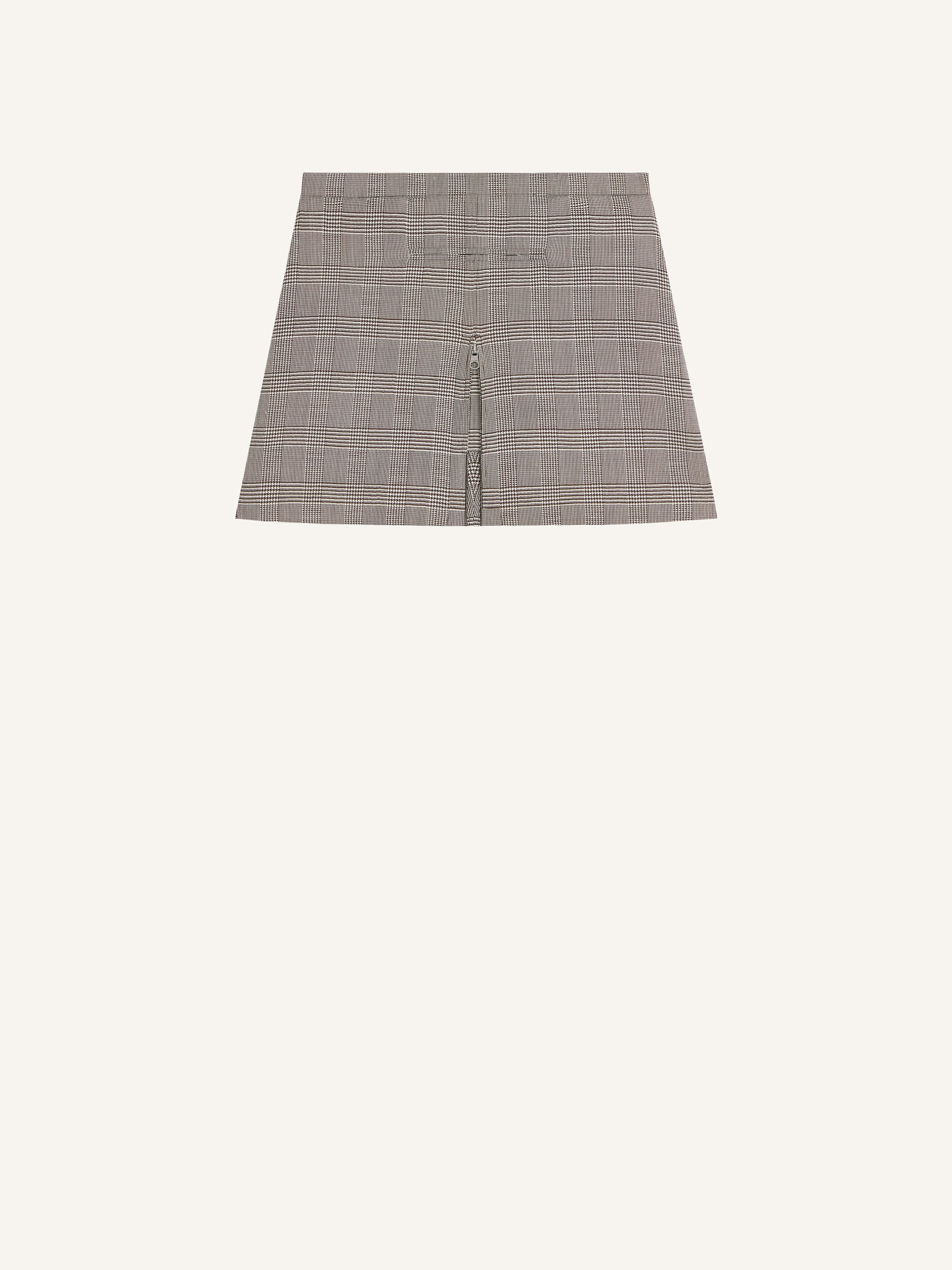 Prince of Wales tailored mini skirt with welt pocket and zip opening centered at front. The model is 1.75m tall and wears a size 36. DETAILS Composition: 54% wool, 46% polyester Country of Manufacture: RO SKU: 324CJU180PL0166B107 Color: Sand / Mud Brown
