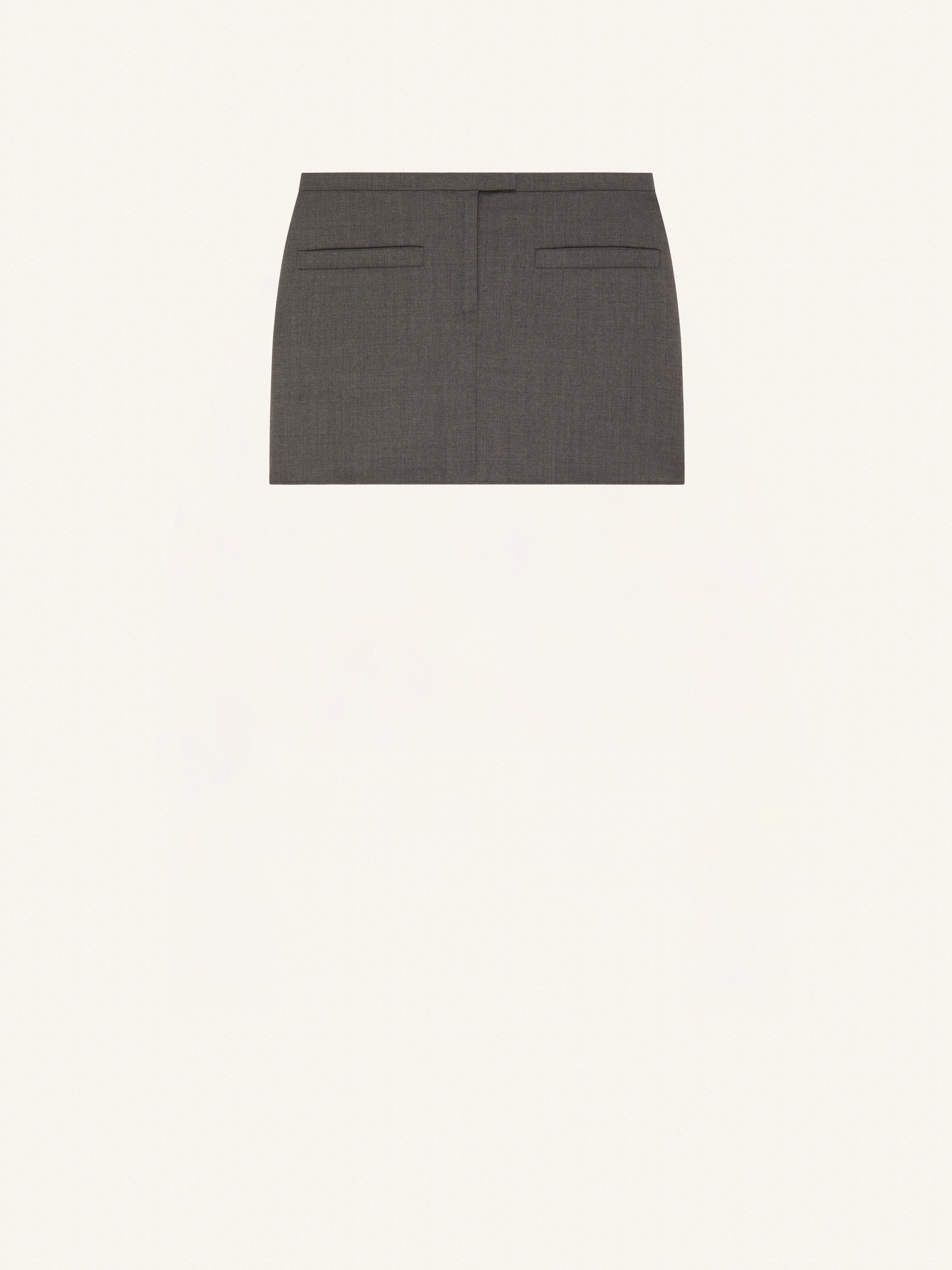 Tailored trapeze mini skirt with side pleats, thin belt and welt pockets. DETAILS Composition: 70% Wool 25% Polyamide 5% Other Country of manufacture: Slovakia Color: Steel Grey Item code: 323CJU116WO0073
