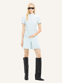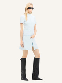 Twill tailored mini skirt with welt pocket and zip opening centered at front. The model is 1.76m tall and wears a size 36. DETAILS Composition: 83% polyester, 17% acetate Country of Manufacture: RO SKU: 324CJU180PL00077021 Color: Iceberg