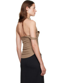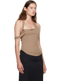 Stretch cotton ribbed jersey tank top. · Asymmetrical construction · Halter strap · Embroidered logo at chest · O-ring hardware at shoulder strap · Curved hem Supplier color: Mocha 98% cotton, 2% elastane. Made in Portugal 252783F111015