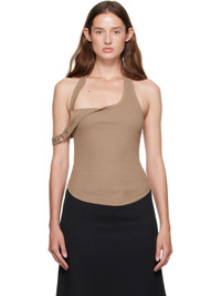 Taupe Asymmetric Buckle Tank Top