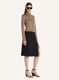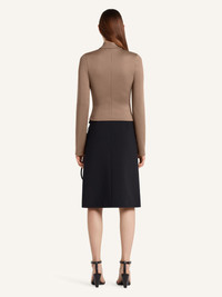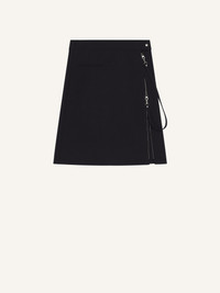 Mid-length wool crepe skirt with zipped opening on the side and detachable wire. Front welt pocket. The model is 1.77m tall and wears a size 36. DETAILS Composition: 45% polyester, 36% wool, 16% polyamide, 3% lyocell Country of Manufacture: RO SKU: 325CJU278WO01439999 Color: Black