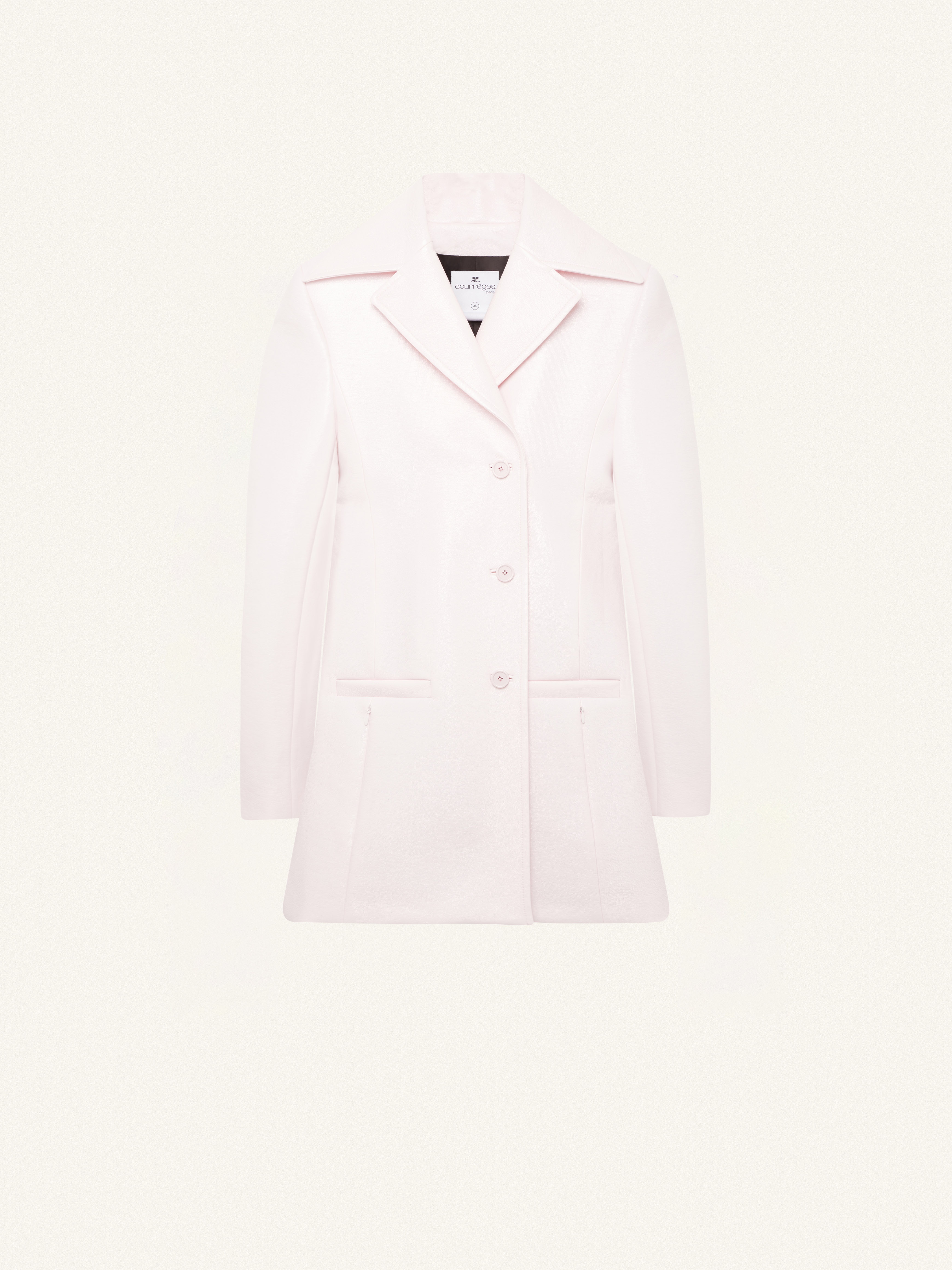 This short Heritage vinyl trench coat offers a trapeze shape. It has a large collar, three welt pockets. DETAILS Composition: 88% Cotton 10% Polyurethane 2% Elastane Made in: Serbia Color: Pale Pink Code Article : 423CMA122VY0014