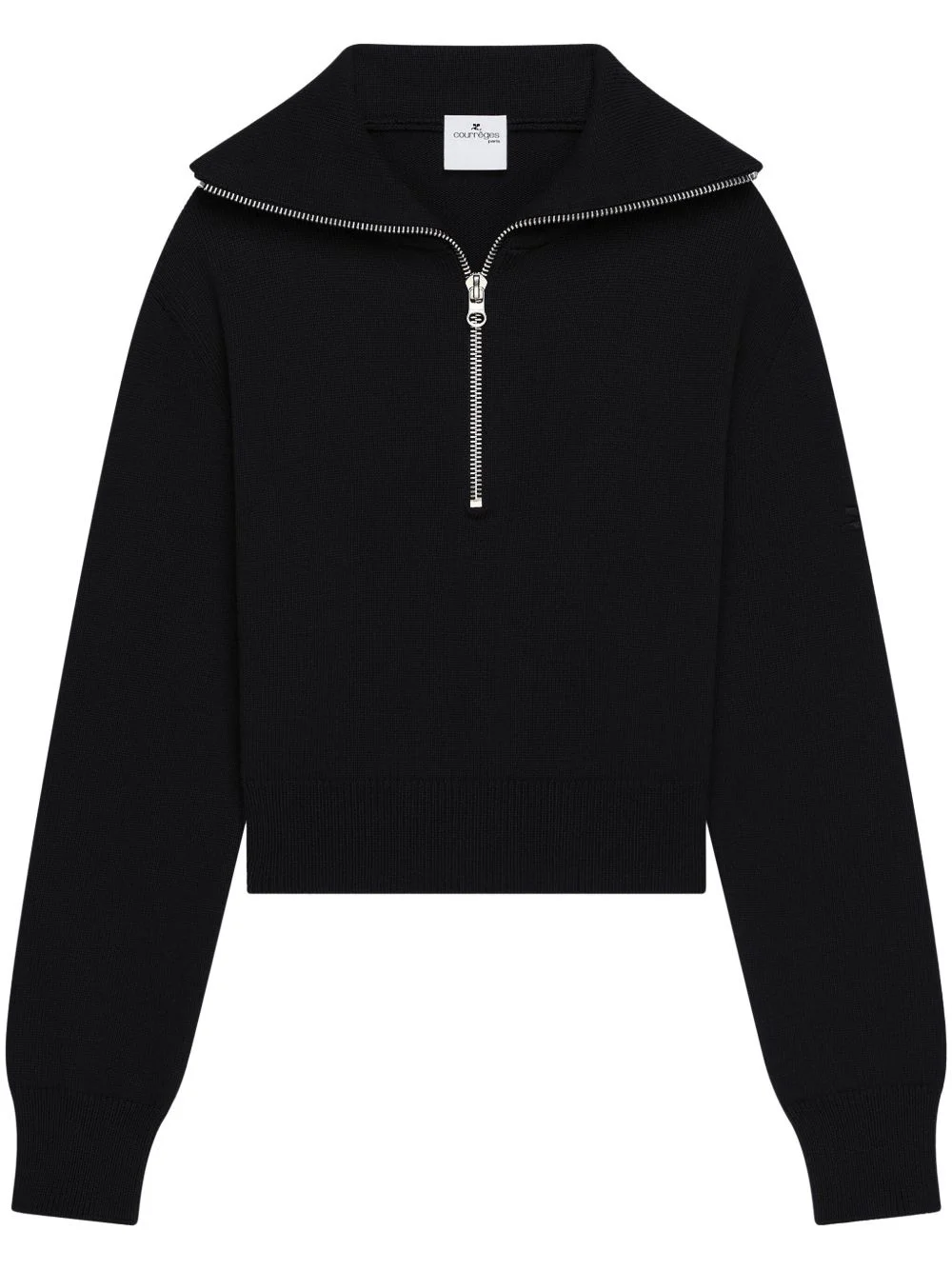 Trucker jumper Highlights - Black - Half front zip fastening - Stand-up collar - Ribbed trim - Drop shoulder Imported Composition Cotton 67%, Polyamide 30%, Fabric 3%