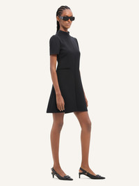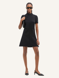 Trapeze mini dress with high collar and AC logo on side. Short sleeves and two front welt pockets. The model is 1.76m tall and wears a size 36. DETAILS Composition: 83% polyester, 17% acetate Country of Manufacture: RS SKU: VESCRO443PL00079999 Color: Black