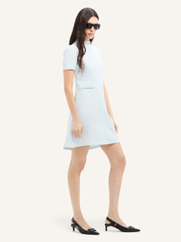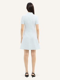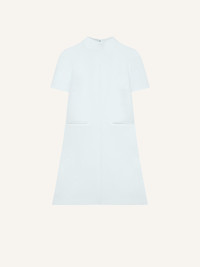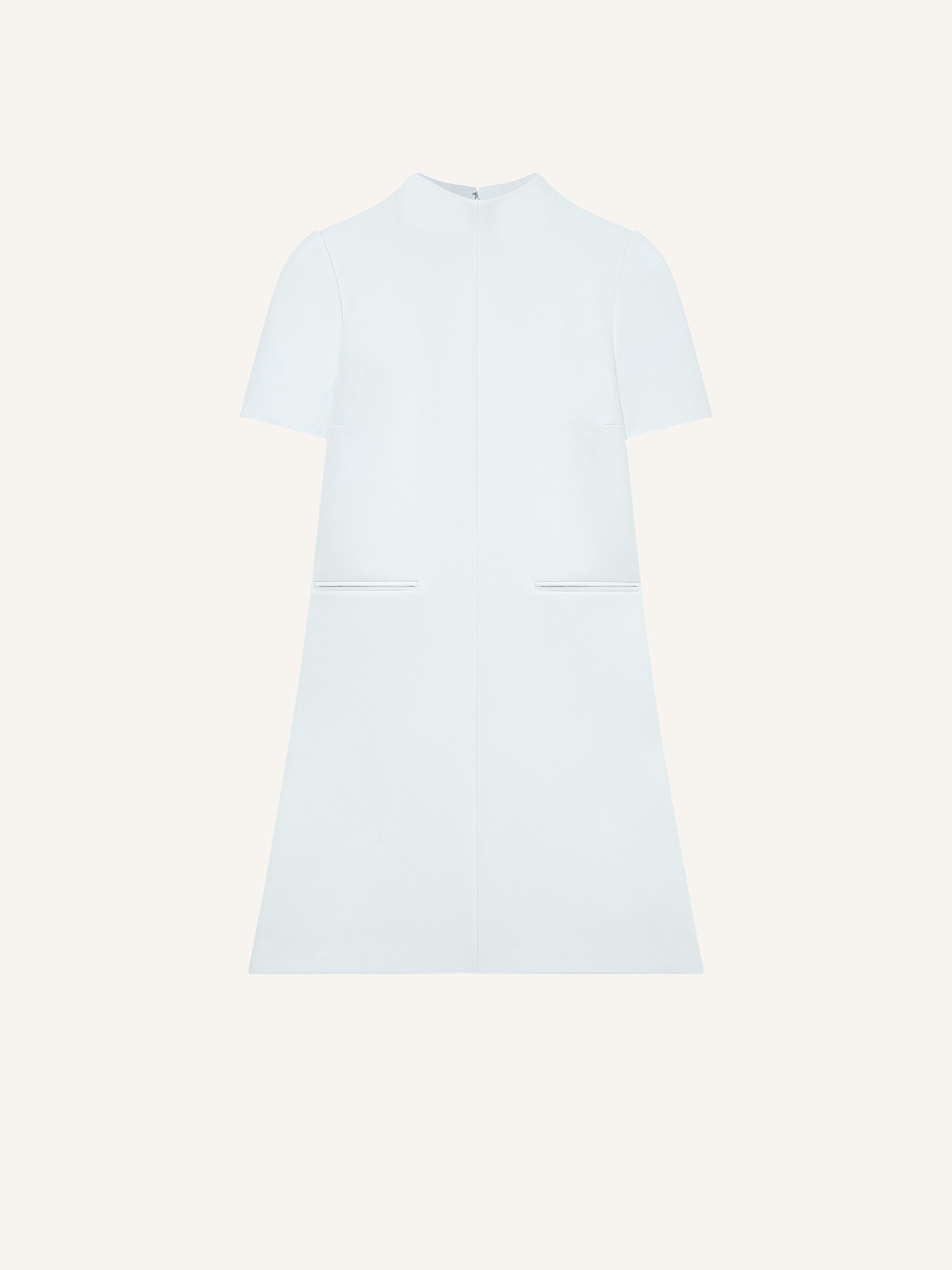 Trapeze mini dress with high collar and AC logo on side. Short sleeves and two front welt pockets. The model is 1.75m tall and wears a size 36. DETAILS Composition: 83% polyester, 17% acetate Country of Manufacture: RS SKU: 324CRO443PL00077021 Color: Iceberg