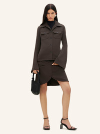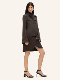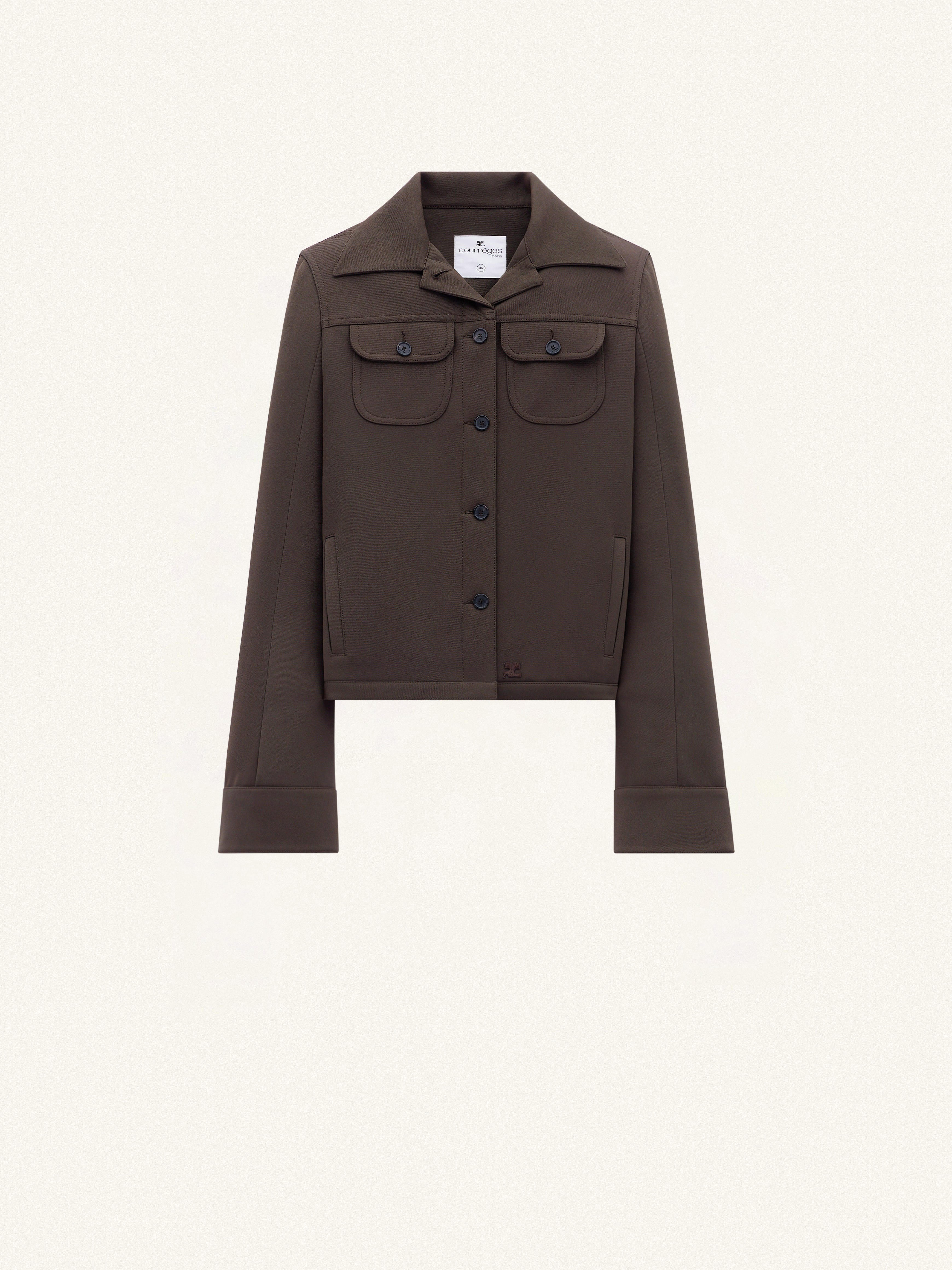 Twill trucker overshirt. Long flared sleeves. Two rounded chest pockets and two piped side pockets. Embroidered AC logo at the bottom. The model is 1m75 tall and wears a size 36. DETAILS Composition: 83% polyester, 17% acetate Country of Manufacture: RS SKU: 224CBL182PL00071093 Color: Mud Brown