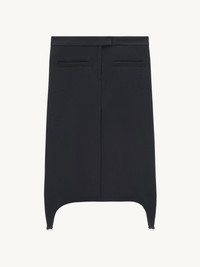 Knee lenght skirt with flit, heritage pockets and metallic suspenders. DETAILS Composition: 83% Polyester 17% Acetate Lining: 100% Cupro Color: Black Country of manufacture: Bulgaria Item code: 123CJU079PL00079999