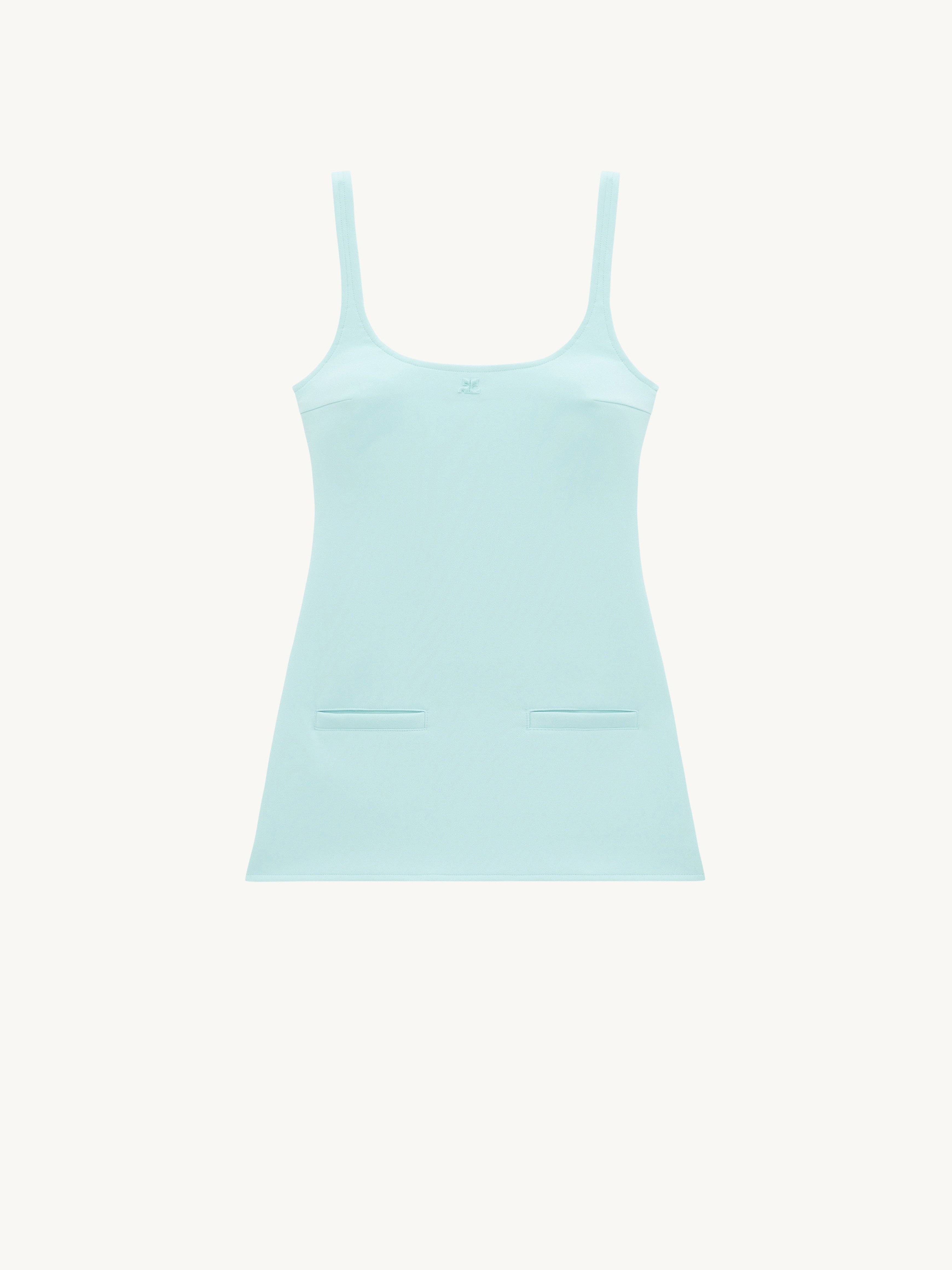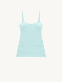 Trapeze mini dress with heritage pockets and embroidered logo with straps. DETAILS Composition: 83% Polyester 17% Acetate Lining: 100% Cupro Color: Turquese Country of manufacture: Portugal Item code: 123CRO166PL00077017