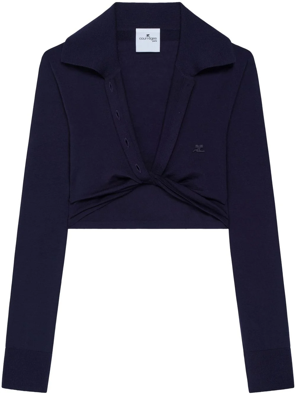 twist-detail cropped polo jumper Highlights - Black - Front button placket - Applique logo - V-neck - Long sleeves Made in Italy Composition Merino 100%