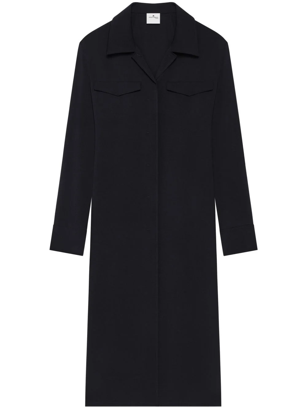 two-pocket midi dress Highlights - Black - Concealed front fastening - Classic collar - Long sleeves - Straight hem Imported Composition Polyester 100%