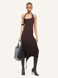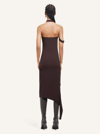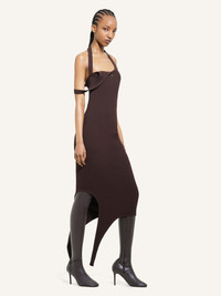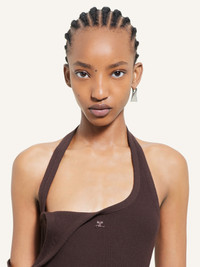 Sleeveless rib knit undressed effect mid-length dress with AC logo centered below neckline. Fitted cut. The model is 1.75m tall and wears a size S. DETAILS Composition: 70% viscose, 30% polyester Country of Manufacture: BG SKU: 424MRO484FI00011983 Color: Chocolate