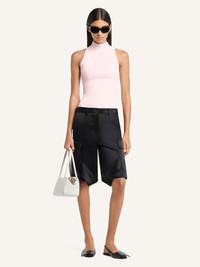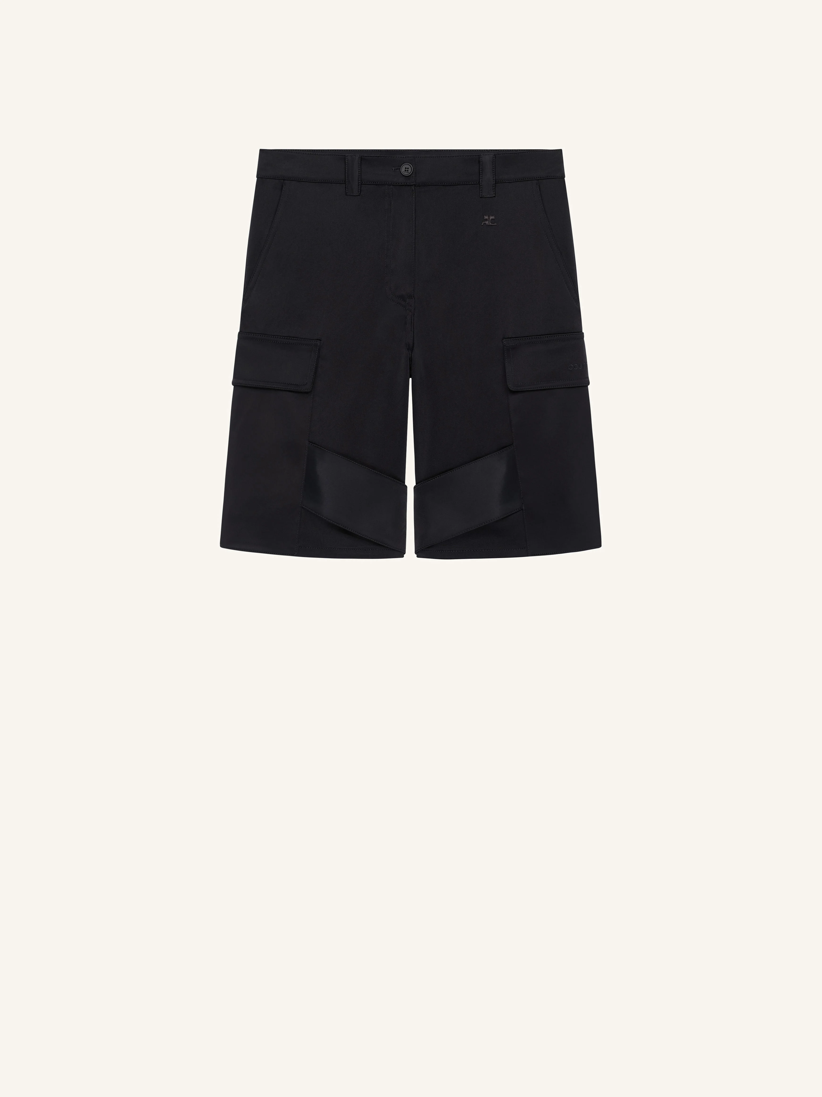 Satin chaps shorts with two utility pockets and buckle details. Embroidered AC logo on the front. The model is 1.79m and wears a size 36. DETAILS Composition: 83% triacetate , 17% polyester Country of Manufacture: RO SKU: 126CSH073TA00079999 Color: Black