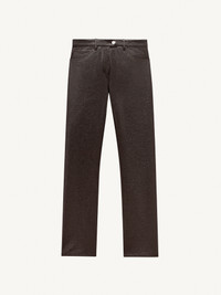 Vinyl pants with tone-on-tone logo on the back pocket. Closure fly style Courrèges with zip and lacquered pressure. Two Italian pockets on the side, two patch pockets on the back. Model not lined. DETAILS Main fabrics : 88% Cotton 10% Polyurethane 2% Elastane Made in : Serbia Color : Chocolate Item code : 122CPA013VY00031983