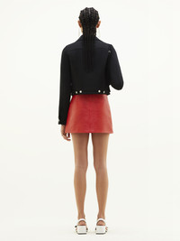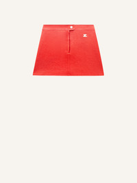 Vinyl miniskirt with white embroidered AC logo on the front. Closure fly style Courrèges with zip and white lacquered pressure. Darts in the back. Lined model. DETAILS Composition: 88% Cotton 10% Polyurethane 2% Elasthane Lining :100% Cupro Country of manufacture: Serbia Color : Heritage Red Item Code :PERCJU001VY00143020