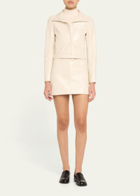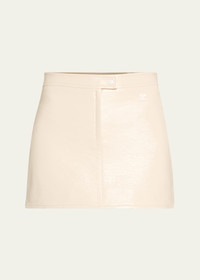 Courreges vinyle reedition skirt featuring logo embroidered side High waist A-line silhouette Mini length Snap-tab/zip fly Cotton/polyurethane/elastane Lining: Cupro Imported Online Inquiries: BGS21_B8P3G| Store Inquiries: #4615272