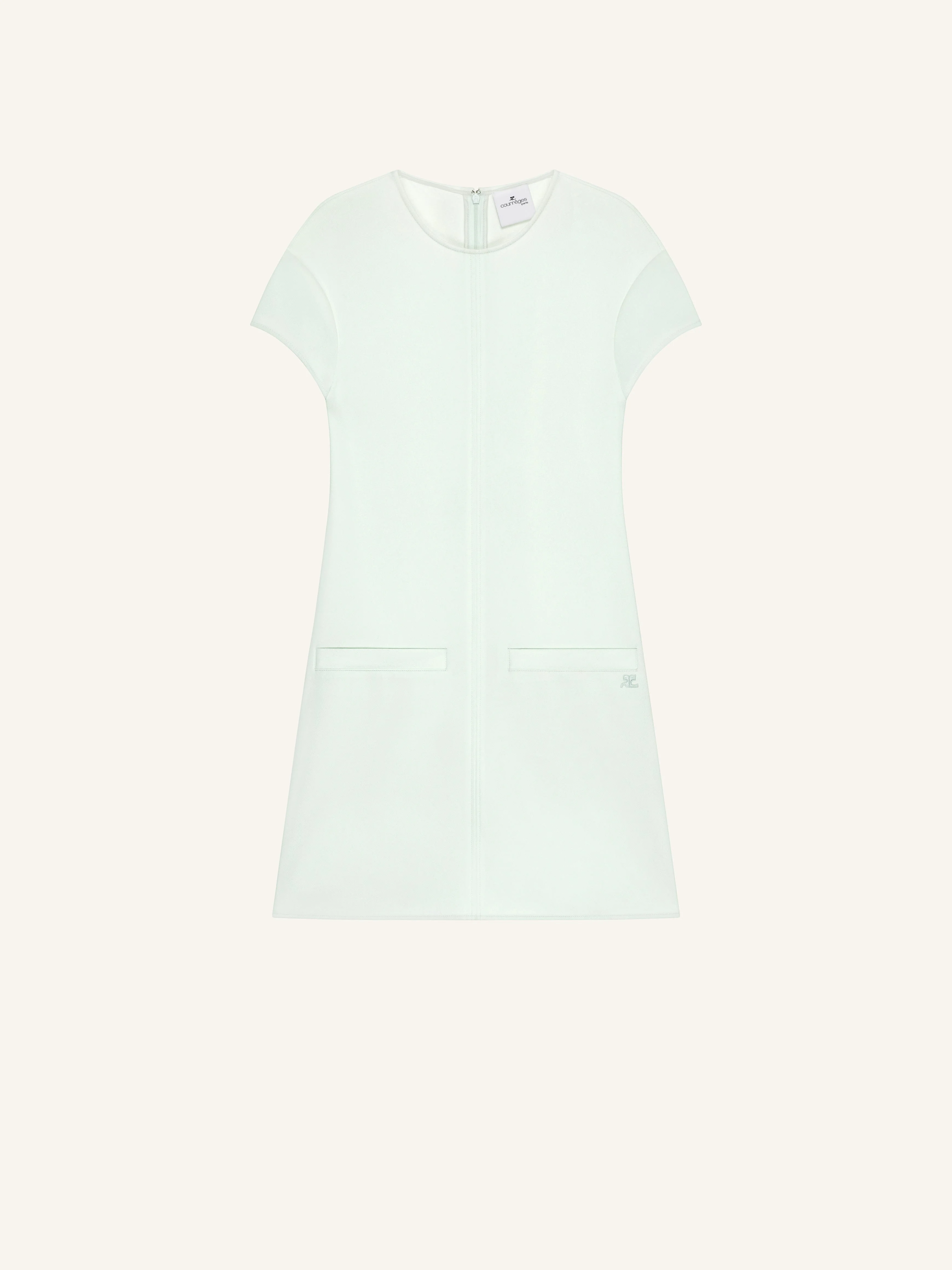 Short sleeved heritage polywool dress. Two welt pockets with embroidered AC logo on the front and zipped closure at back. DETAILS Composition: 89% polyester , 11% polyurethane Country of Manufacture: MG SKU: 126CRO790PL01597038 Color: Light mint