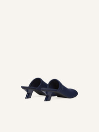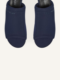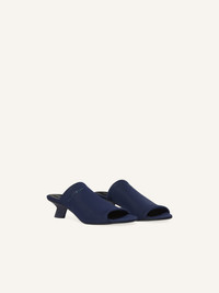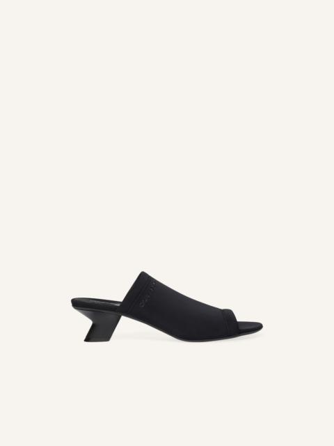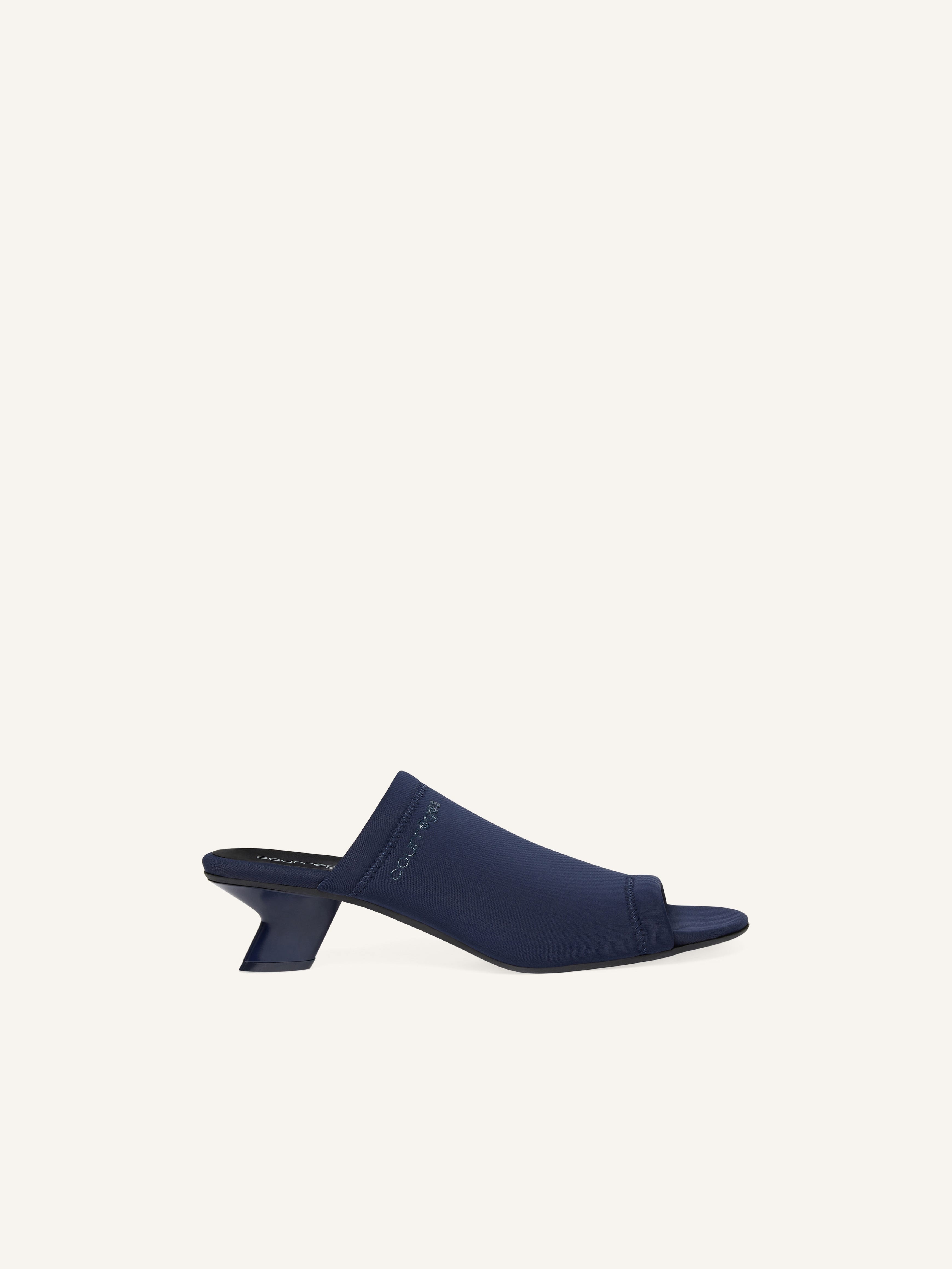 Wet scuba mules in stretch technical fabric with slanted heel and "Courreges" logo on top. Heel height : 50 mm DETAILS Composition: 82% polyamide, 18% elastane Country of Manufacture: IT SKU: 125SSD029NE00067087 Color: Mineral Blue