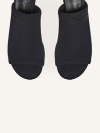 Wet scuba mules in stretch technical fabric with slanted heel and "Courreges" logo on top. Heel height : 50 mm DETAILS Composition: 82% polyamide, 18% elastane Country of Manufacture: IT SKU: 125SSD029NE00069999 Color: Black