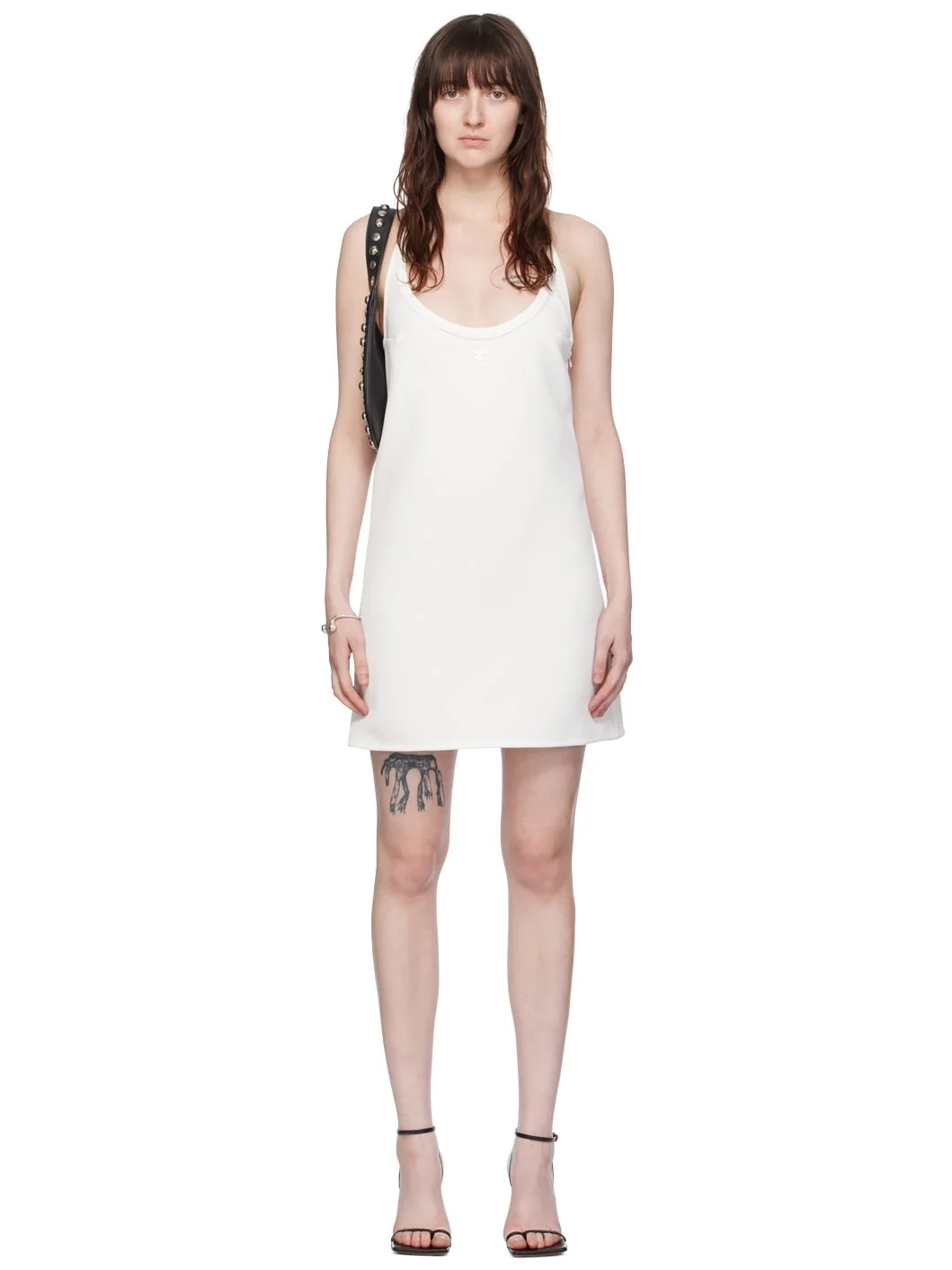 Polyester- and acetate-blend twill dress. · Scoop neck · Embroidered logo patch at chest · Concealed zip closure at side seam · Adjustable faux-leather pin-buckle halter strap · Low back Supplier color: Heritage white Body: 83% polyester, 17% acetate. Trim: 100% polyester. Made in Serbia 241783F052009