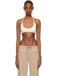 Cotton jersey bra. Rib knit trim in beige throughout. · Scoop neck · Logo applique at chest · Self-tie halter straps · Self-tie straps at back Supplier color: White/Limestone Body: 100% cotton. Trim: 100% polyurethane. Made in Portugal 241783F073002