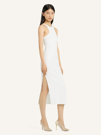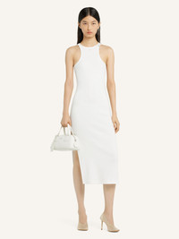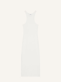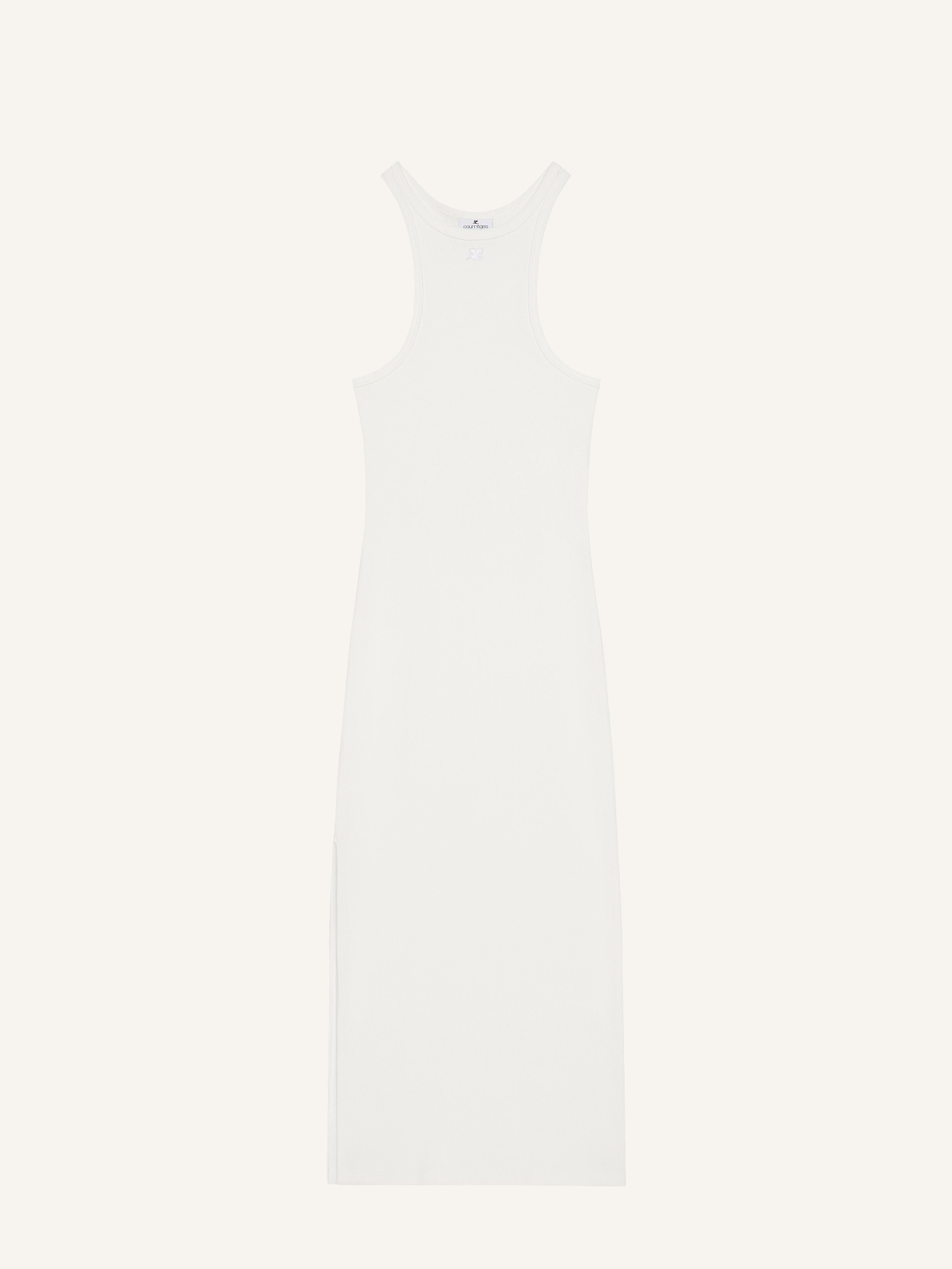 Sleeveless 90's rib dress with racer back and embroidered AC logo below neckline. Side slit. The model is 1.80m tall and wears a size S. DETAILS Composition: 98% cotton, 2% elastane Country of Manufacture: PT SKU: 125JRO586JS01940001 Color: Heritage White