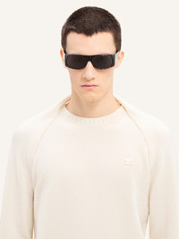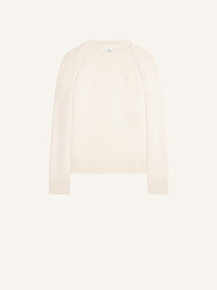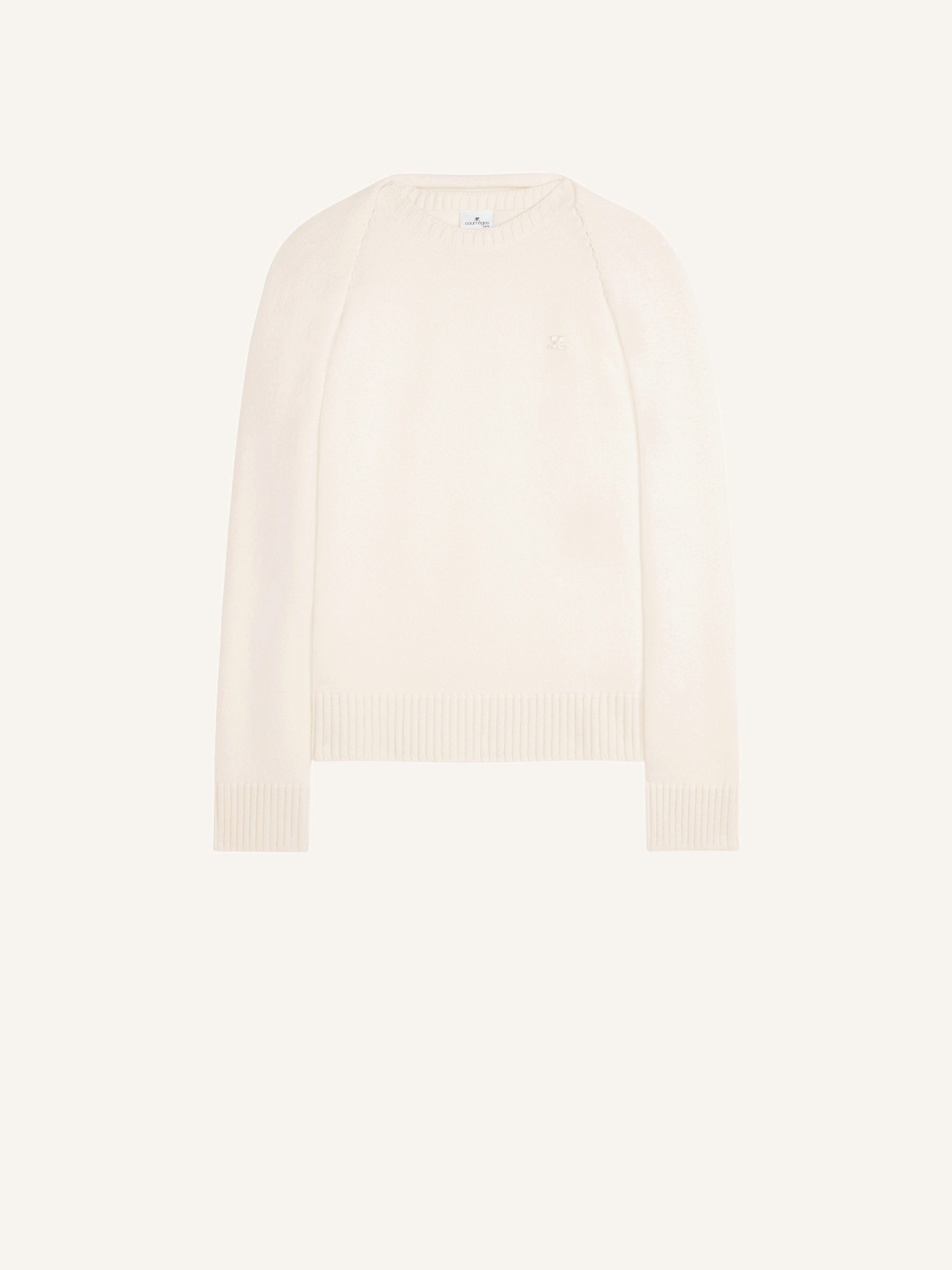 Straight wool sweater with long sleeves, draped band at shoulders and AC logo on chest. This item is unisex. The female model is 1.76 m tall and the male model is 1.85 m tall, both wearing a size M. DETAILS Composition: 100% wool Country of Manufacture: IT SKU: 324MPU185FI00620079 Color: Natural Beige