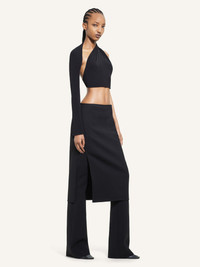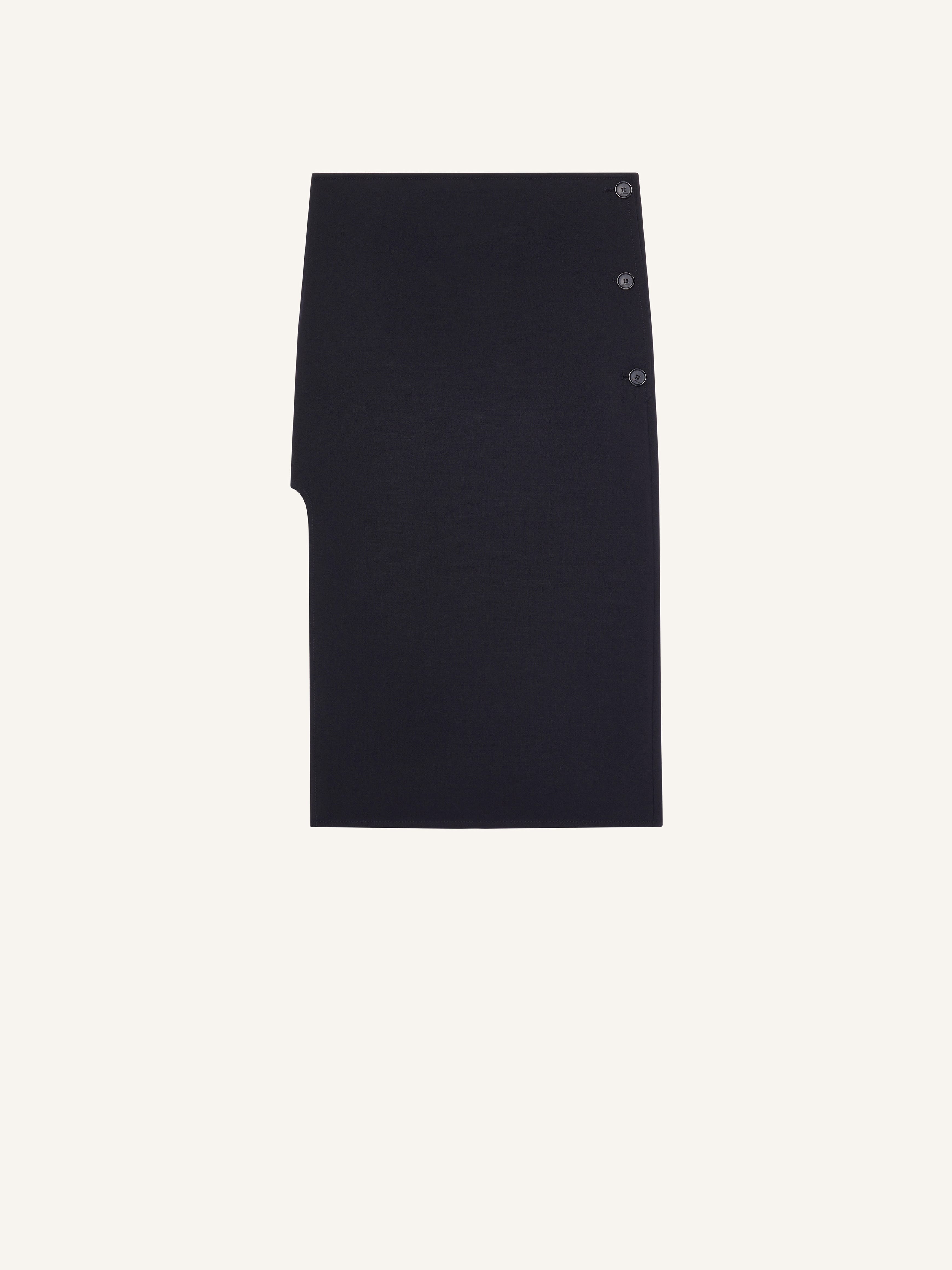 Straight midi skirt made of wool. Button front with leg opening. DETAILS Composition: 93% wool, 4% elastane, 3% polyamide Country of Manufacture: RO SKU: 424CJU196WO01139999 Color: Black