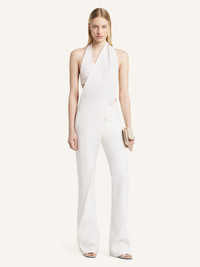 Asymmetrical draped jumpsuit with double-breasted crossover front and adjustable bra. The model is 1.77m tall and wears a size 36. DETAILS Composition: 89% polyester, 11% polyurethane Country of Manufacture: IT SKU: 425CCB048PL01590001 Color: Heritage White