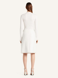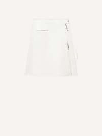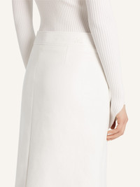 Mid-length vinyl skirt with zipped opening on the side and detachable wire. Front welt pocket. The model is 1.77m tall and wears a size 36. DETAILS Composition: 88% cotton, 10% polyurethane, 2% elastane Country of Manufacture: RO SKU: 325CJU311VY00140001 Color: Heritage White