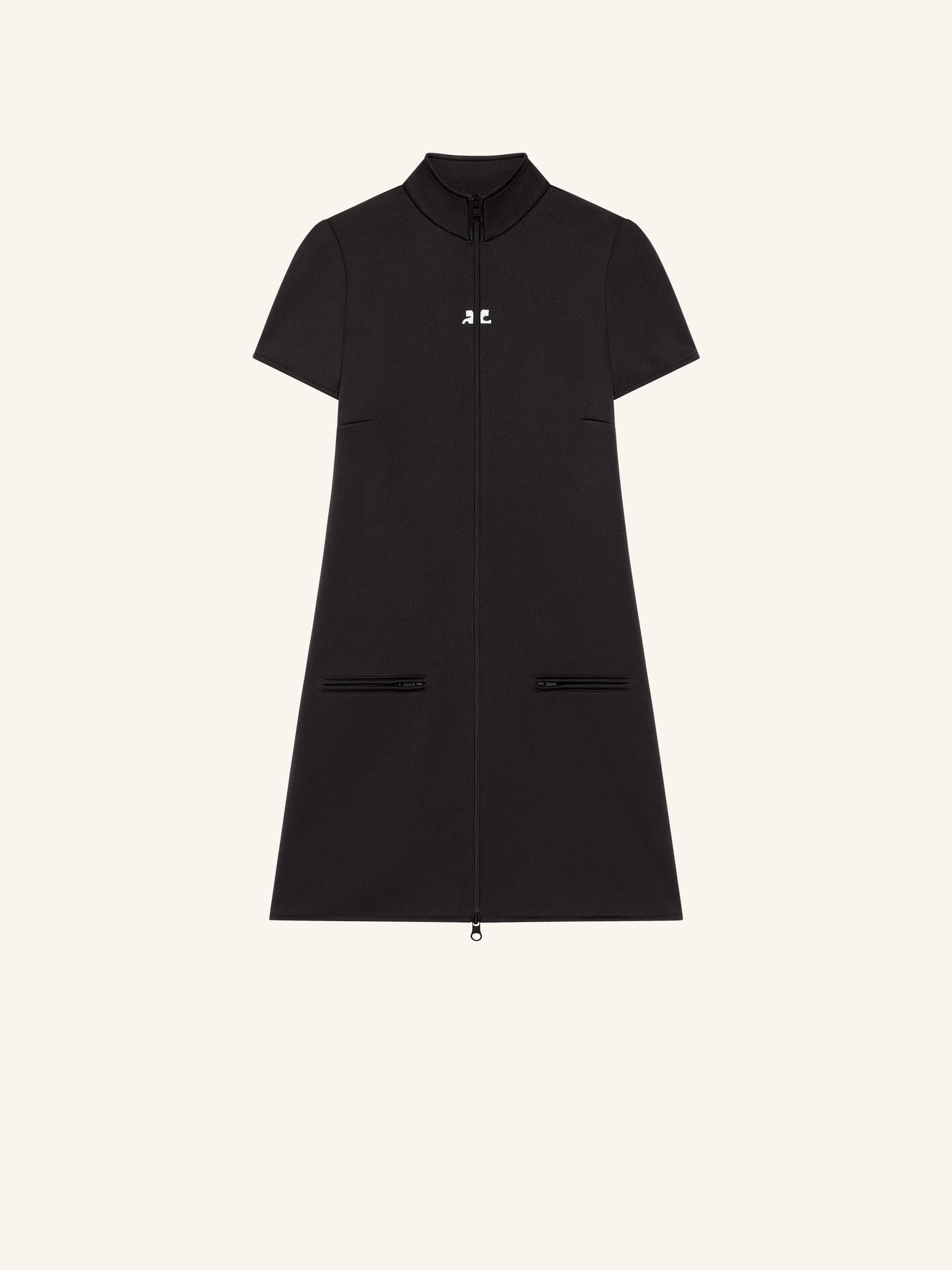 Mockneck zipped tracksuit jersey short dress with embroidered AC logo at center chest. Two front welt pockets. The model is 1.77m tall and wears a size S. DETAILS Composition: 100% polyester Country of Manufacture: IT SKU: 325JRO686JS02509999 Color: Black