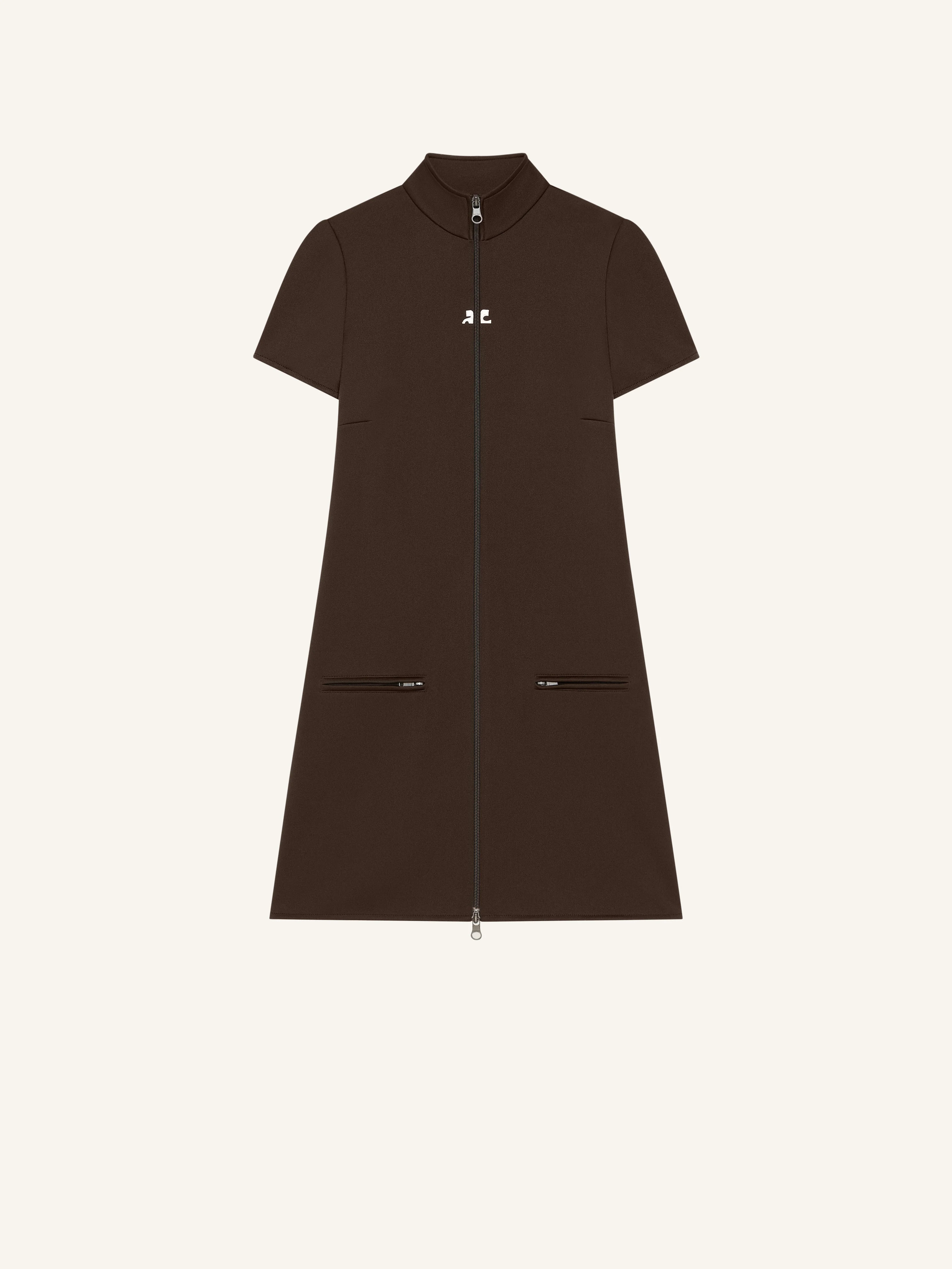 Mockneck zipped tracksuit jersey short dress with embroidered AC logo at center chest. Two front welt pockets. The model is 1.77m tall and wears a size S. DETAILS Composition: 100% polyester Country of Manufacture: IT SKU: 325JRO686JS02501983 Color: Chocolate