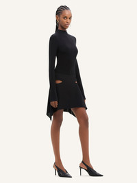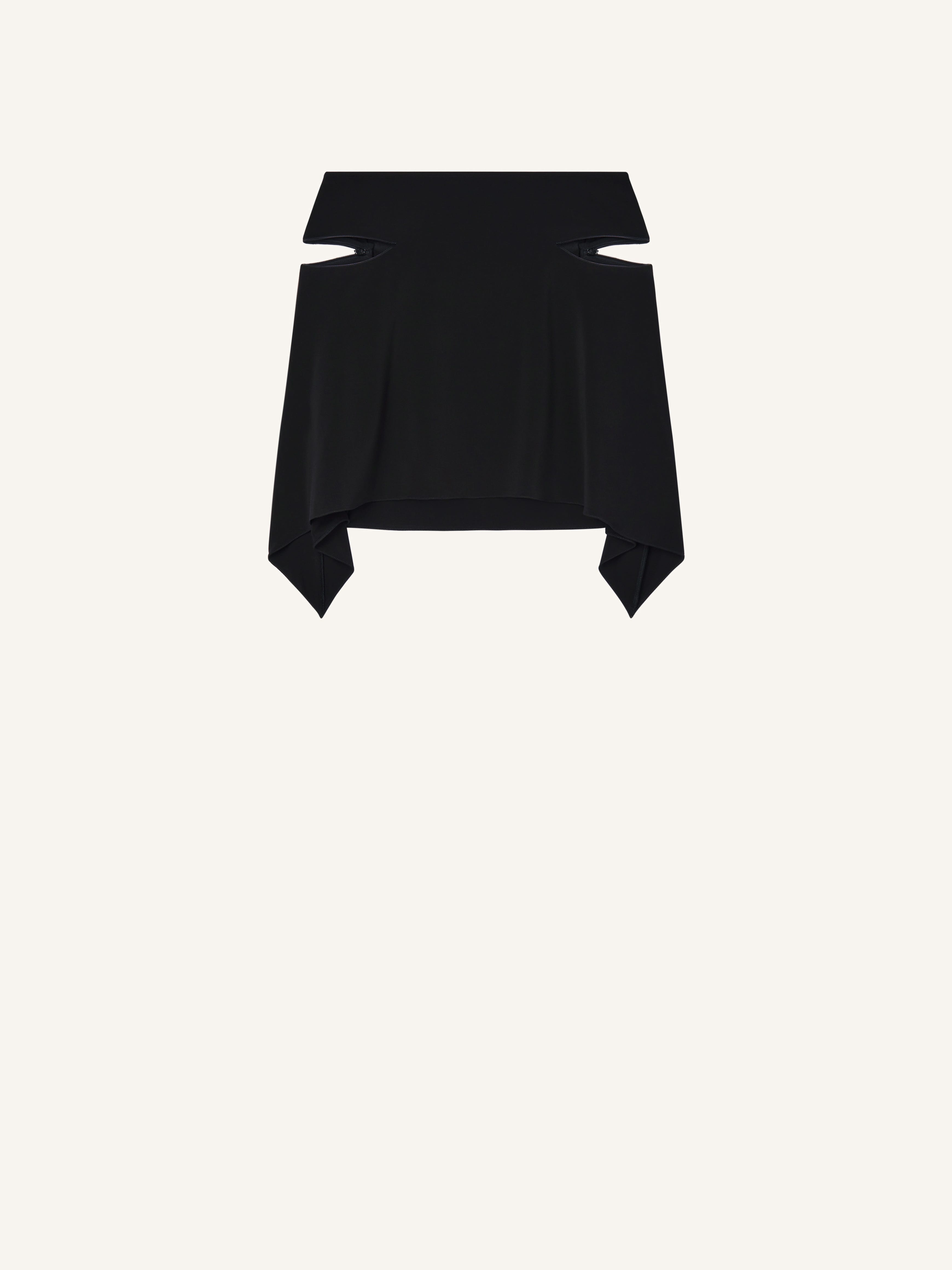 Flowing mini skirt in crepe jersey with zipped openings at the hips. The model is 1.76m tall and wears a size 36. DETAILS Composition: 95% viscose, 5% elastane Country of Manufacture: FR SKU: 324JJU184JS01459999 Color: Black