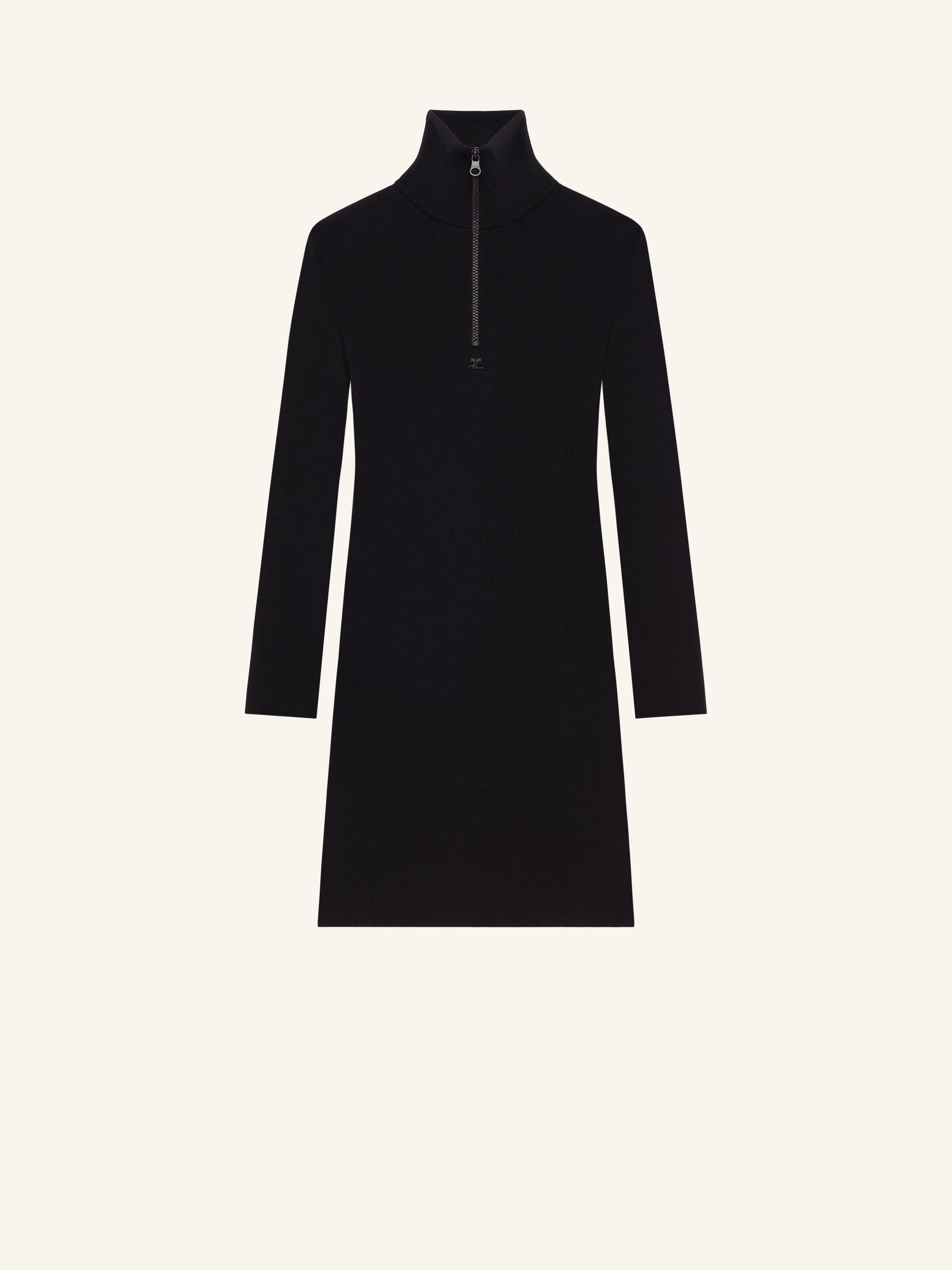 Knit zipped mockneck short dress with AC logo on chest. The model is 1.77m tall and wears a size S. DETAILS Composition: 100% merino wool Country of Manufacture: PT SKU: 325MRO691FI00719999 Color: Black