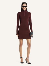 Knit zipped mockneck short dress with AC logo on chest. The model is 1.77m tall and wears a size S. DETAILS Composition: 100% merino wool Country of Manufacture: PT SKU: 325MRO691FI00714010 Color: Burgundy