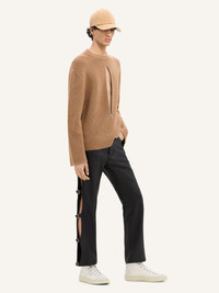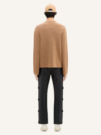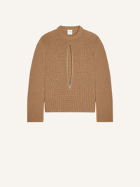 Straight ribbed wool sweater with long sleeves and a zip opening along the bust. This item is unisex. The female model is 1.75 m tall and the male model is 1.85 m tall, both wearing a size M. DETAILS Composition: 100% virgin wool Country of Manufacture: IT SKU: 324MPU188FI00361964 Color: Toffee