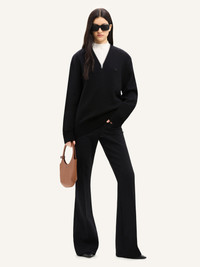 Straight V-neck wool sweater with zip fastening and long sleeves. AC logo on chest. This item is unisex. The female model is 1.78 m tall and the male model is 1.90 m tall, both wearing a size M. DETAILS Composition: 100% merino wool Country of Manufacture: PT SKU: 324MPU179FI00369999 Color: Black