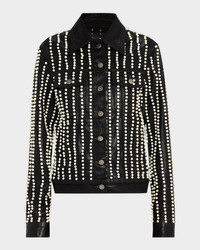 Cout De La Liberte "Johnny" coated denim trucker jacket featuring allover pearlembellishment Point collar Long sleeves with button cuffs Dual chest pockets Classic fit Hem sits at the hip Buttonfront Polyester Dry clean Imported