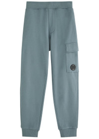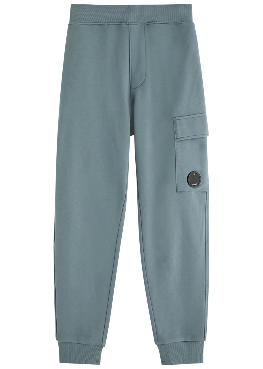 Info & Care C.P. Company cotton sweatpants Concealed drawstring elasticated waistband, two slip pockets, two flap front patch pockets, designer engraved lens embellishment, ribbed trims Pull on; 100% cotton; Machine wash; Size & Fit Inside leg length: 28 inches/ 71cm Midweight; Regular fit, tapered-leg cut; Model is 6'3"/ 191cm and wears a size medium