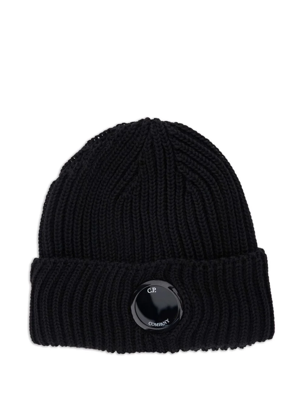 ribbed beanie hat Highlights - Black - Ribbed knit - Goggle lens detail - Merino wool - Folded cuff - Close-fitting Made in Italy Composition Merino 100%