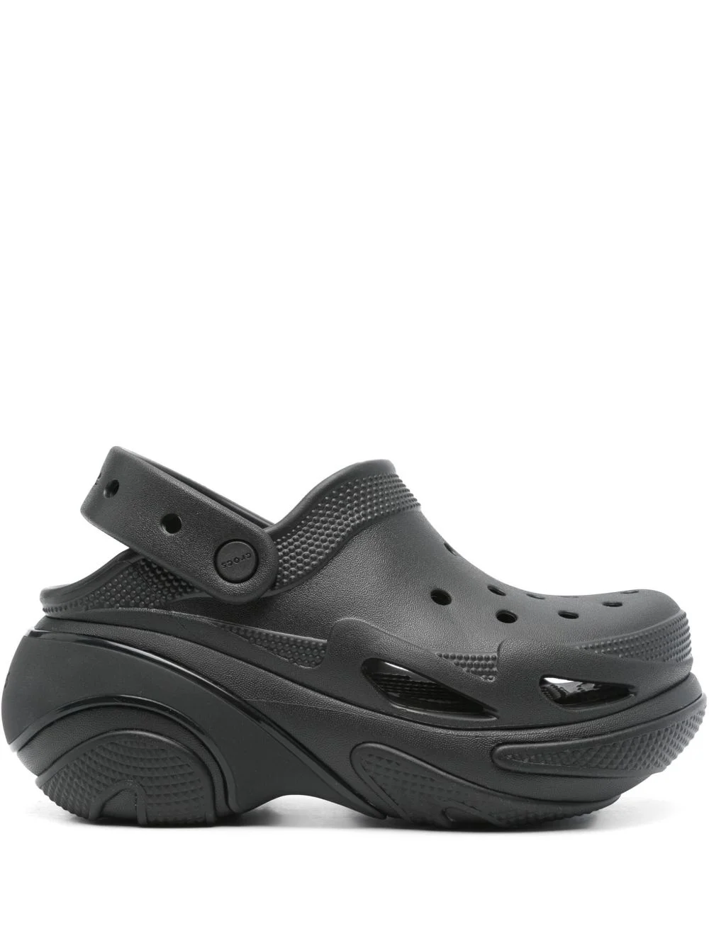 Bubble Crush clogs Highlights - Black - Slip-on style - Mid wedge heel - Open back - Slingback strap - Perforated detailing - Cut-out detailing - Asymmetric toe - Branded footbed - Unlined - Chunky rubber sole Imported Composition Lining: Rubber 100% Outer: Rubber 100% Sole: Rubber 100% SIZE & FIT Measurement HEEL 3.14 in(8 cm) HEIGHT 1.57 in(4 cm)
