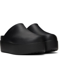 Lightweight Croslite™ EVA foam rubber slip-on loafers in black. · Textured detailing at vamp · Logo embossed at outer side · Molded Crocs Comfort™ rubber footbed · Platform rubber midsole · Treaded rubber sole · Platform: H2" Supplier color: Black Rubber. Made in China 242209F121052