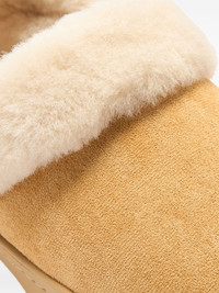 Classic Unfurgettable vegan suede slippers Highlights - Beige - Faux shearling trim - Button embellishment - Round toe - Flat sole Imported Composition Outer: Artificial Suede 100% Lining: Artificial Fur 100% Sole: Rubber 100%