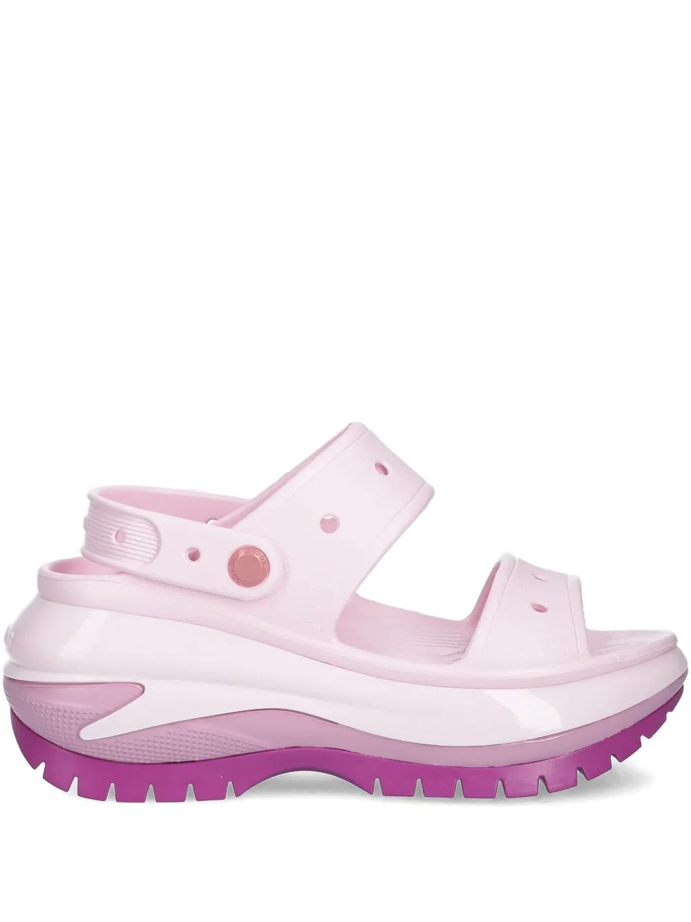 platform strap sandals Highlights - Pink - Platform sole - Lug sole - Double strap - Cut-out details - Round stud embellishment Imported Composition Outer: Croslite™ 100% Lining: Croslite™ 100% Sole: Croslite™ 100%
