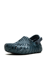 debossed slip-ons These Salehe Bembury x Crocs Pollex clogs are defined by a deep peacock-blue colourway and concave pattern formed from three of the collaborative designer’s own fingerprints. Multi-directional traction, ventilating holes and detachable, adjustable heel straps ensure secure and comfortable wear. Highlights - Blue - Cut-out detailing - Round toe - Ankle touch-strap fastening - Moulded footbed - Rubber sole Imported Composition Sole: Rubber 100% Lining: Rubber 100% Outer: Rubber 100%