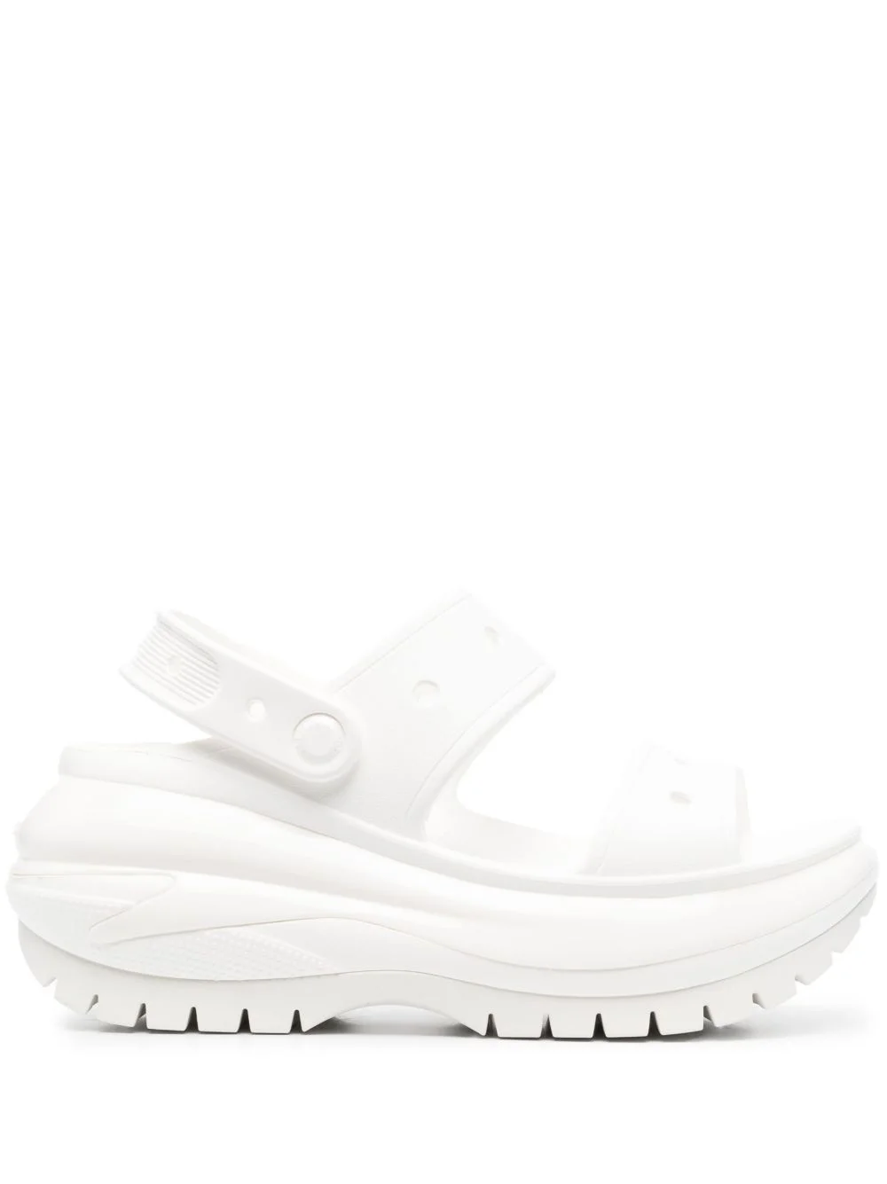 Mega Crush 90mm clog sandals optical white punch-hole detailing debossed logo to the rear moulded footbed open toe slingback strap 90mm platform Imported Composition Outer: Rubber 100% Lining: Rubber 100% Sole: Rubber 100% SIZE & FIT Measurement HEEL 3.34 in(8.5 cm) PLATFORM 1.77 in(4.5 cm)